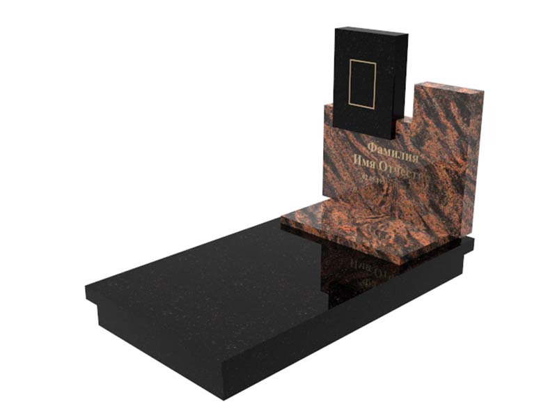 Комплекс сочетает в себе 2 цвета камня. Стелы располагаются на надгробной плите. Стела имеет вырез, на нее монтируется черная плитка с портретом.